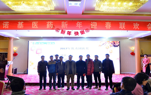 瑞气呈祥舒万物,同心同德开新局。2月9日,北京盛诺基医药科技有限公司新年迎春联欢会在北京温都水城维也纳国际饭店举行。会上揭晓了公司2017年十大工作进展;董事长孟坤博士致辞,部署2018年工作,并为获得2017年优秀员工、优秀团队颁奖。