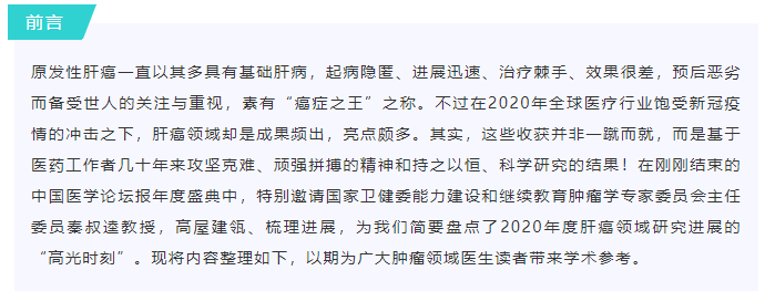 秦叔逵教授盘点2020肝癌领域年度进展:“癌症之王”称号易主,学术进展如火如荼